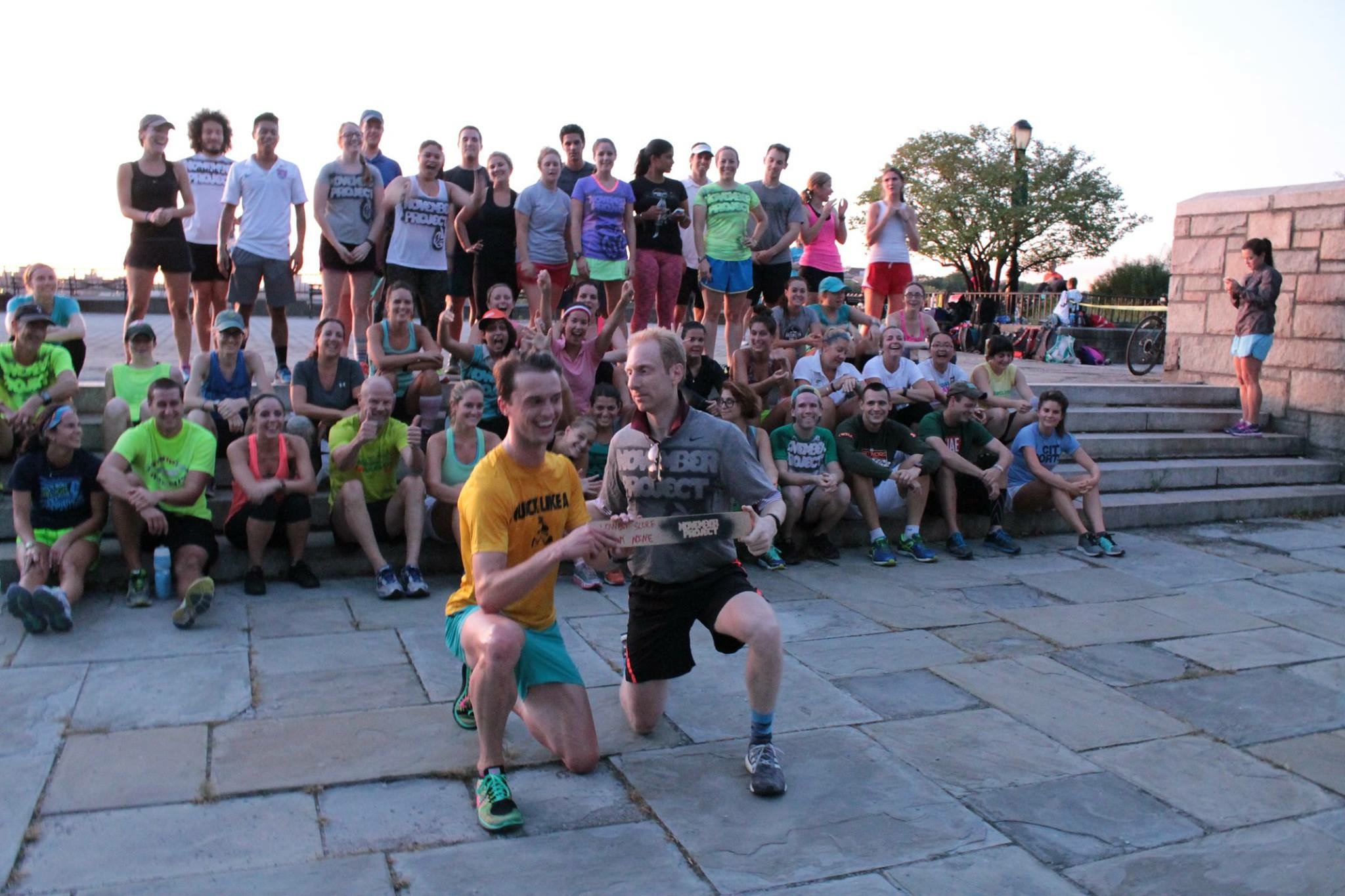 Later, Paul presented “The Stick” to Maggie. The stick is symbolic of the Positivity Award presented to someone who shows up consistently and gives it her all. We held a short “Passing of the Stick” ritual, in which the stick was tossed from one member of the Tribe to Maggie. Congrats, Maggie! Get out there and kill the NYC Marathon!