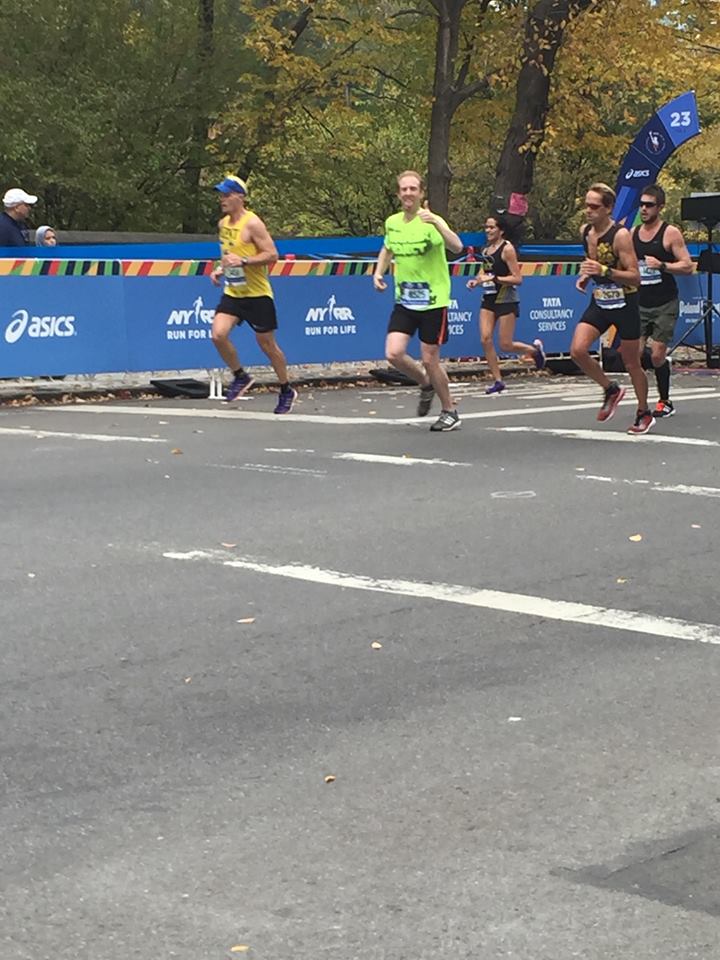 And then BOOM! I cruised through Engineer’s Gate into Central Park! 2.5 miles left on roads I know better than any others in the City. I came through Mile 24 around 2:43, so I knew that 2:55 was going to be tough, but sub-3 was happening. This felt amazing! My legs were strong, my mind felt sharp, and I pushed hard, getting some NP love along the way. The downhill on Cat Hill felt amazing, and I pushed through the rolling hills near Summer Stage and then cruised downhill to mile 25 and then out of the Park and onto Central Park South. Through this section I passed a ton of runners, and was passed by only one, who I later passed on Central Park South. I simply focused on reeling in whoever was in front of me and, after passing them, reeled in the next guy. I could feel the finish line.